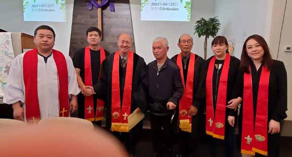 2023年四月二十二日由唐崇怀等牧师组成的按立团按立杜启洁